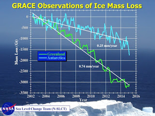 | Pérdida de masa de hielo en Groenlandia y Antártida. |