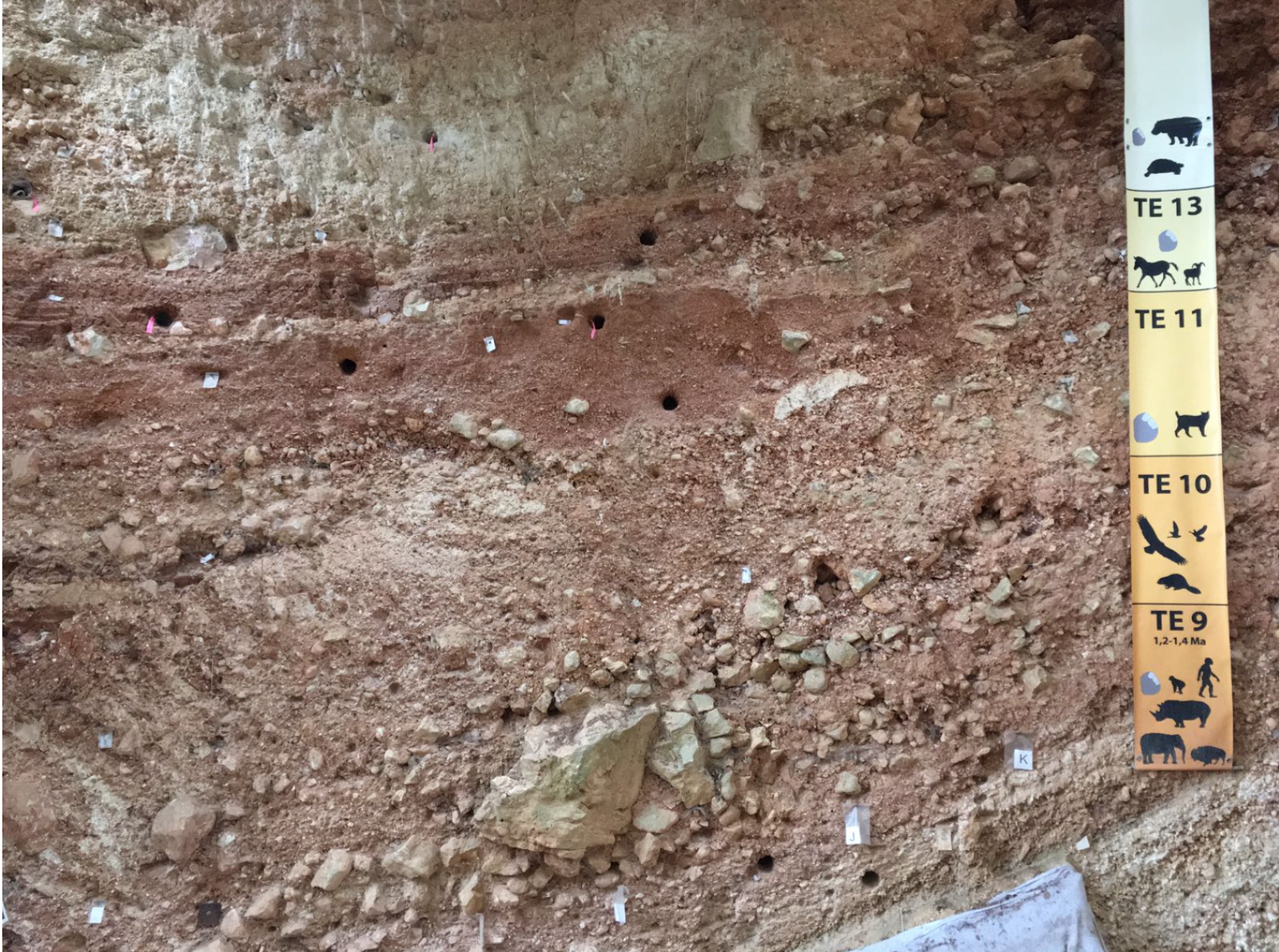 La primera de ellas es la Sima del Elefante, donde se ven perfectamente los estratos y la estructura de «queso Gruyere» del terreno. El tiempo se mide en cientos de miles de años, y se han encontrado especies de todo tipo. Desde el elefante que le da su nombre hasta restos de ave, oso, cabra e incluso restos de homínido. A día de hoy se han encontrado una falange y una mandíbula de un tipo de Homo, aún por identificar. En diferentes estratos se han encontrado herramientas de Modo 1 -en los niveles más bajos- y de Modo 3 -en los más superficiales-. Está confirmado geológicamente que hay tierra de hasta 1,2 millones de años, y que que la macro y microfauna desenterrada en la sima es de hace unos 250.000 – 350.000 años. En este punto teníamos todo más o menos enfocado, y lo cierto es que el frío no era el mayor de nuestros problemas. O sí.