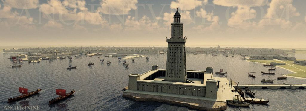 Es de noche a orillas del mediterráneo y Alejandría luce alumbrada por un faro digno de los faraones, aunque se construyera mucho tiempo después. Una de las cosas más espléndidas que no tuvimos la suerte de que llegara hasta nuestros días. Una de tantas. El ajetreo de la noche es el típico de una ciudad costera, algo que no ha cambiado en dos mil doscientos años. Observada desde el mar, su luz podía verse desde un montón de kilómetros de distancia. El colosal faro imponía su visibilidad en la oscuridad desde la isla de Pharos para que los barcos no tuvieran pérdida en su llegada a puerto. Mientras rompía el día, desembarcaba Eratóstenes. Matemático, filósofo, poeta, filólogo y geógrafo griego.