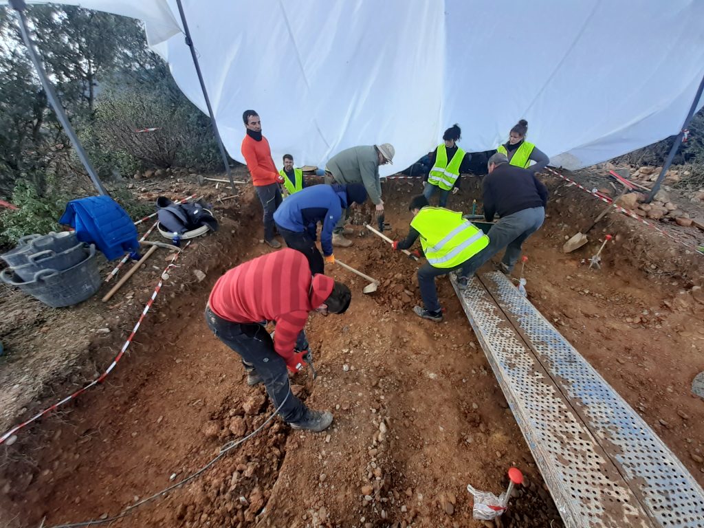 Los trámites de documentación llevan una semana. En paralelo, se establece un equipo de diez investigadores para llevar a cabo la excavación formado por el propio Eudald como director, Marta Navazo, Alfonso Benito y Fco. Javier García, acompañados por becarios predoctorales y alumnos de grado de la Universidad de Burgos. Efectivamente, los científicos recuperan 12 piedras en posición primaria (es decir, donde los materiales se encontrarían en la situación original o próxima de abandono).